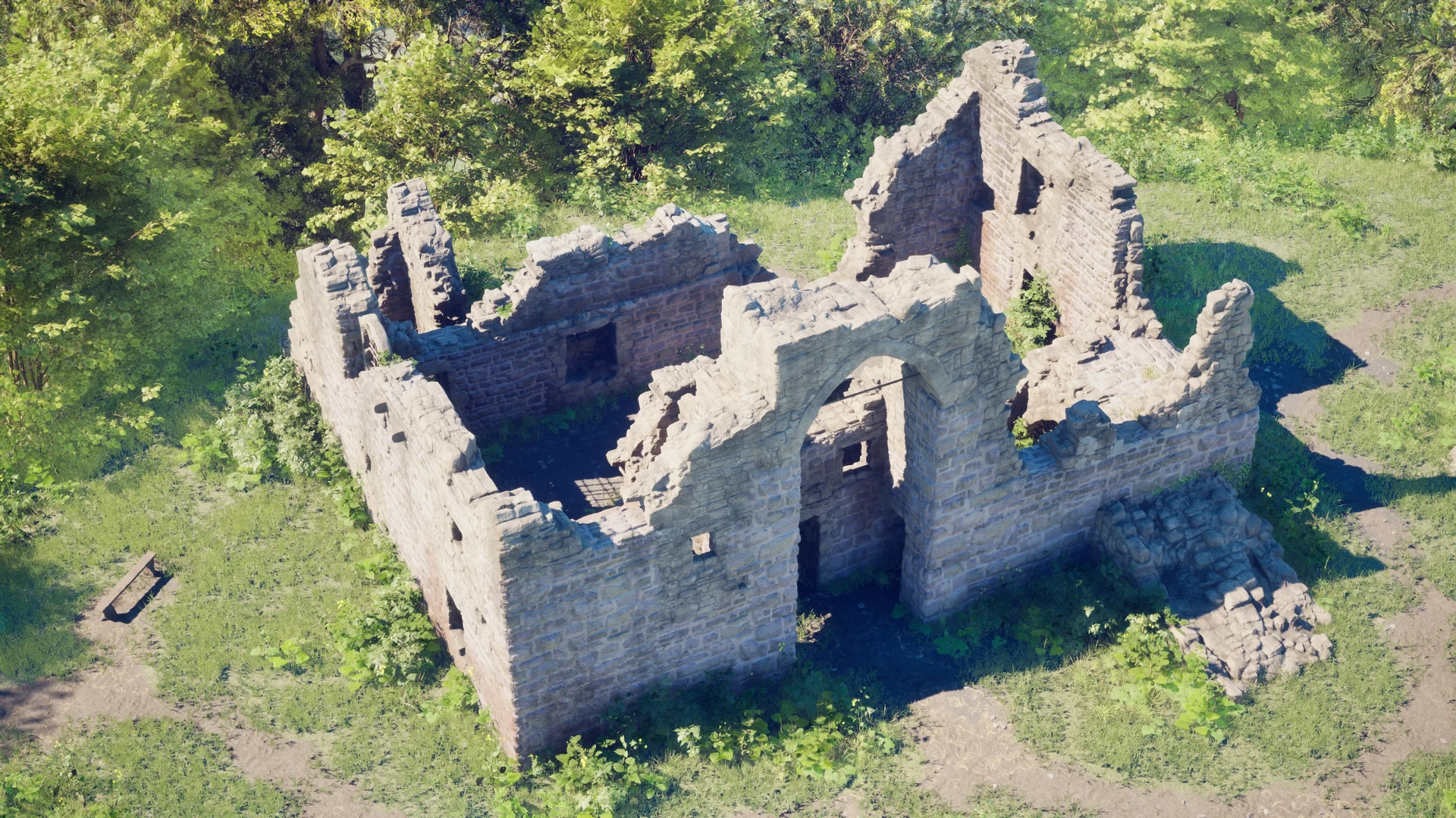 I used a combination of basic blocks (displaced with Megascans textures) and ruin pieces generated from photos on Meshy.