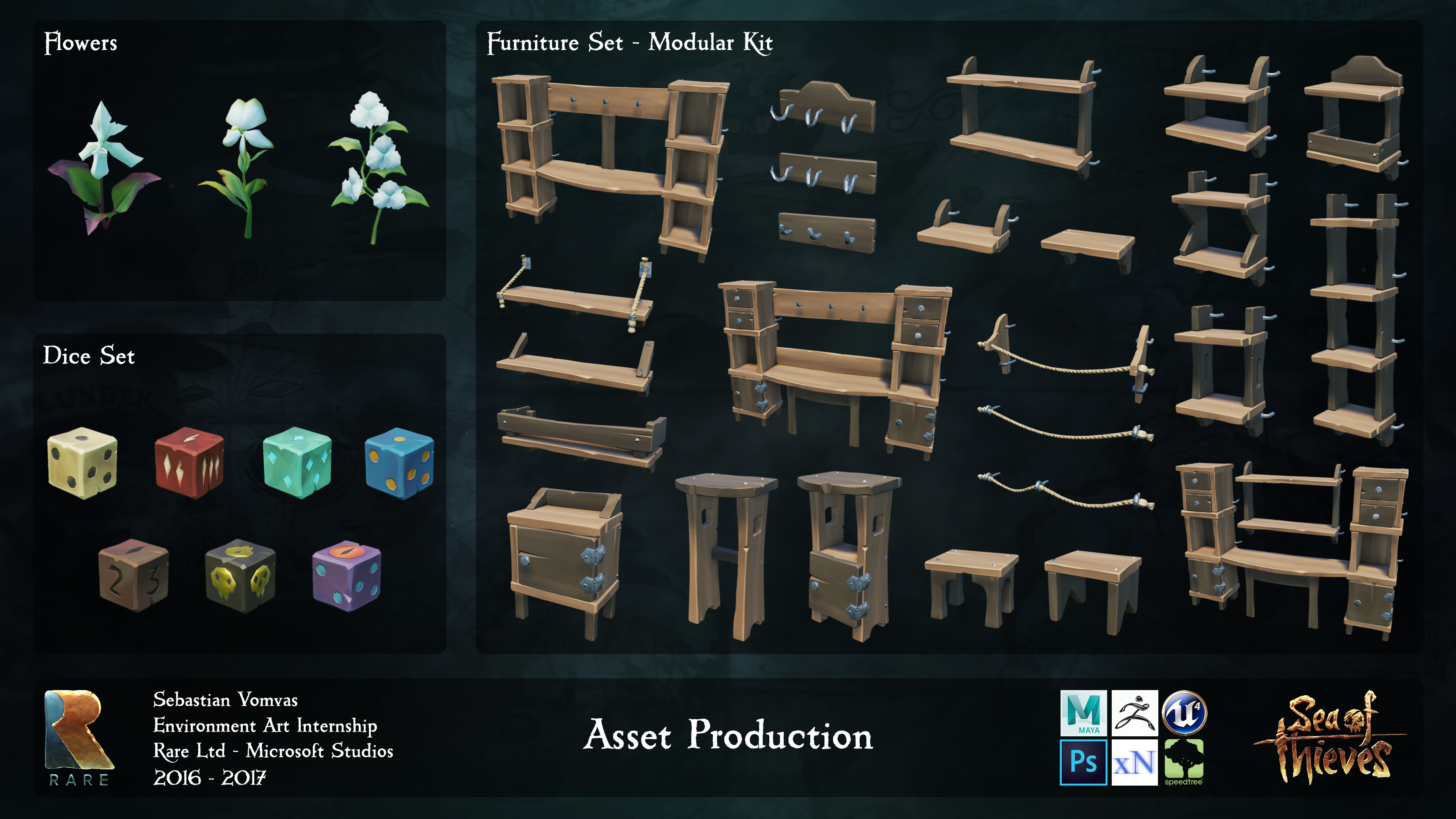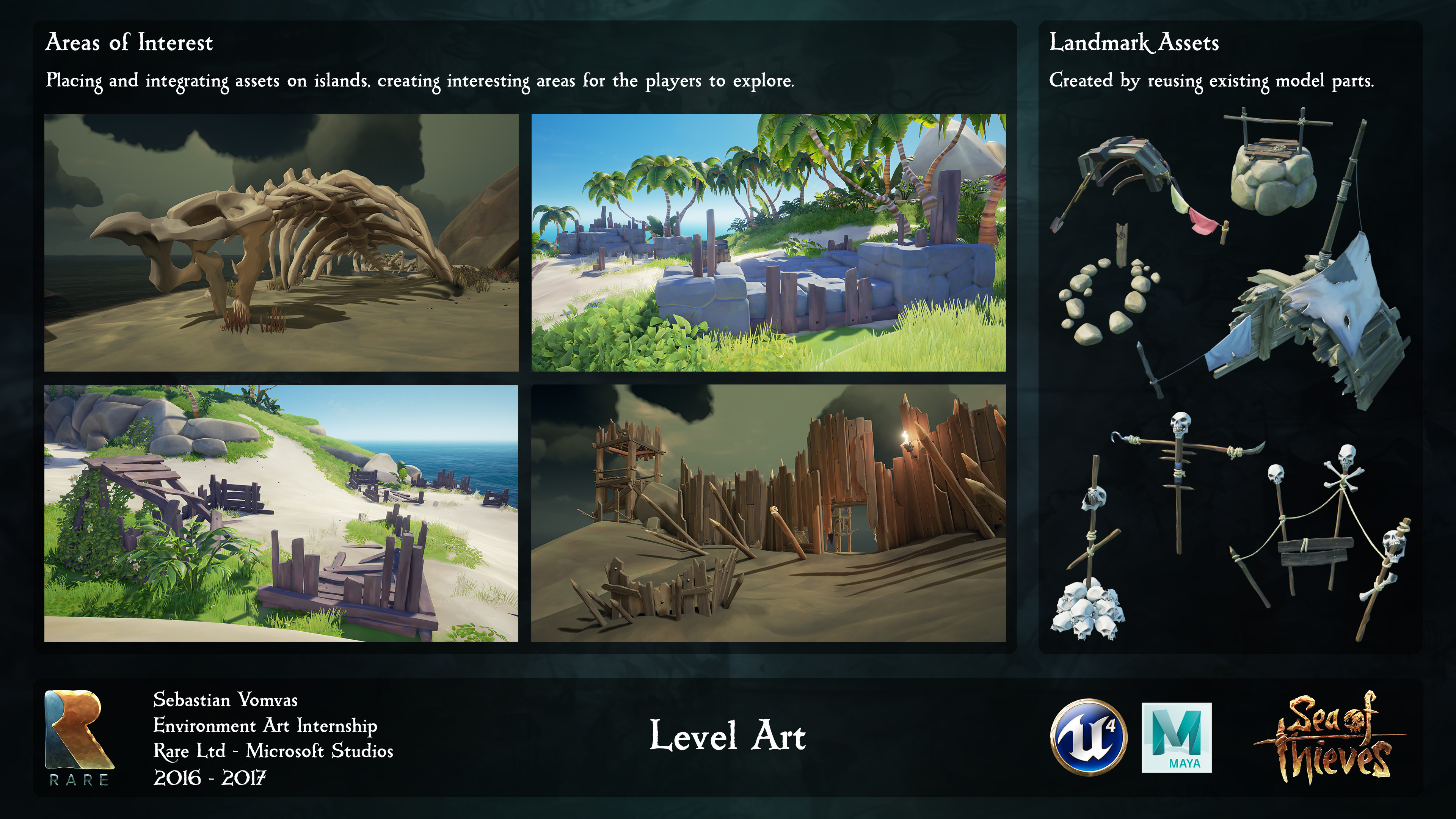 I worked at Rare for one year as an Environment Art Intern in the Asset and Level Art teams, contributing to the creation of the beautiful stylised environments of Sea of Thieves.